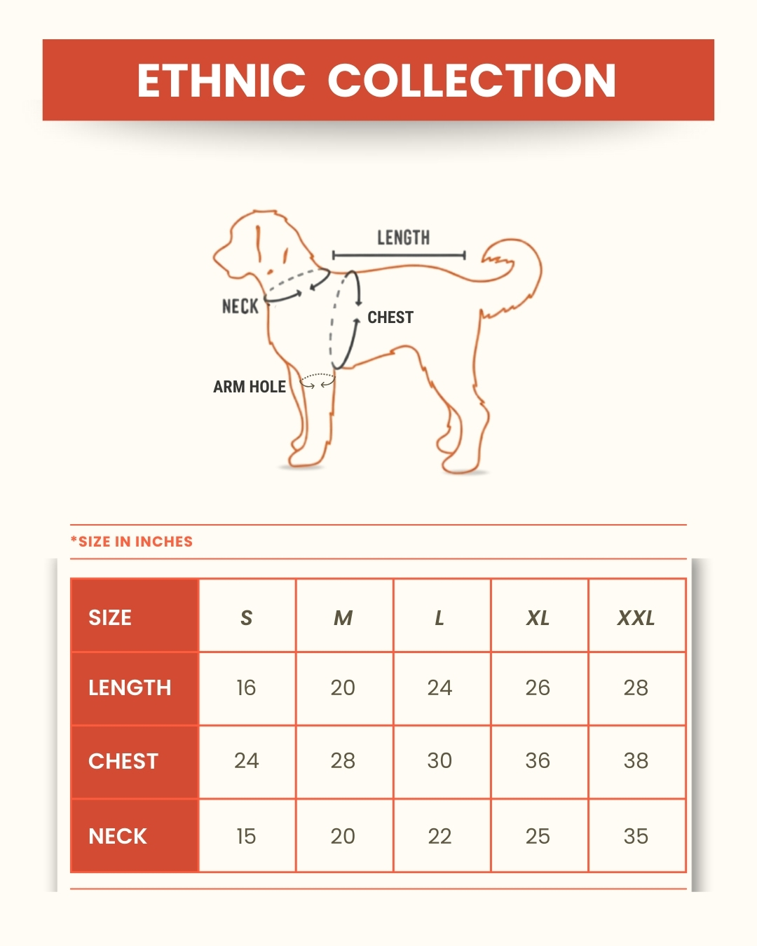 This outfit beautifully blends cultural charm with everyday comfort. With its intricate ethnic detailing and effortless fit, your pet can join in the celebrations looking as festive and graceful as the rest of the family.